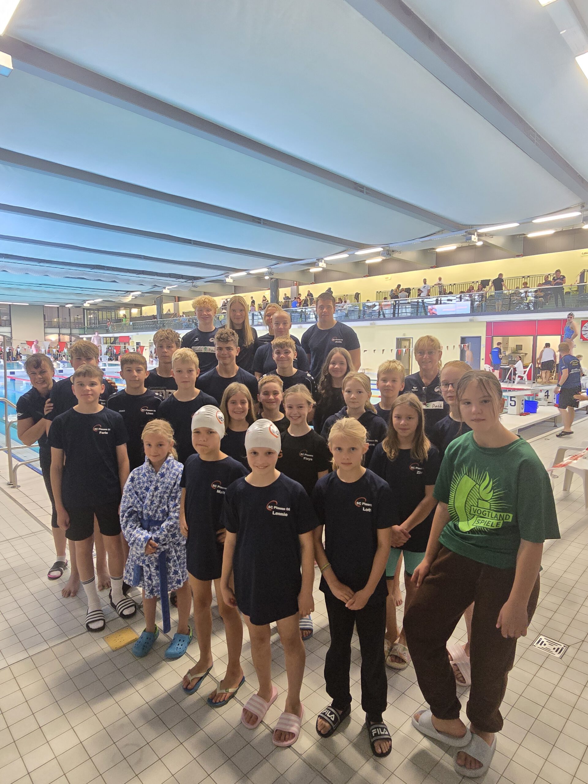 Im Plauener Stadtbad trafen sich am Samstag beim Herbstmehrkampf über 320 Sportler. Es herrschte eine tolle Stimmung, Trommelschläge sollten zu Höchstleistungen anspornen. 26 unserer Schwimmer waren dabei. Für unsere 7 und 8 jährigen Starter stellte es eine Herausforderung dar in dem gut besetzten Starterfeld ihre 50m Beinstrecken bzw. 50m Rücken und Freistil technisch korrekt zu absolvieren, was erfreulicherweise gut gelang. Klara, Lotte, Anna, Leonie und Malte sammelten so weitere wertvolle Wettkampferfahrungen. Emma schaffte es, sich in der Mehrkampfwertung für das 100m Lagenfinale zu qualifizieren, schwamm dort zu einem tollen zweiten Platz und wurde durch ihre punktbesten Wertungen der Starts am Ende im Mehrkampf Dritte. Ebenso gelang dies der ein Jahr älteren Finya. Finya schwamm 50m Brustbeine in der Zeit von 00:50,68 Sekunden, holte dabei die meisten Punkte und durch den dritten Platz im Lagenfinale konnte sie sich über Gesamtbronze und einen Einkaufsgutschein freuen. Das dritte glückliche Bronzemädel an diesem Tag war Marielle, die einen sehr ausgeglichenen Wettkampf in der Mehrkampfwertung der Jahrgänge 2013/2012 zeigte. Für das Lagenfinale qualifizierten sich außerdem Charlotte, Viktor und Florian. Trainerin Liv verabschiedete sich mit vier persönlichen Bestzeiten und der drittschnellsten Zeit über 100m Schmetterling zum Studium nach Dresden. Unsere Lagen Mix Staffel der offenen Wertung mit Liv, Justin, Charlotte und Miron gewann Silber.